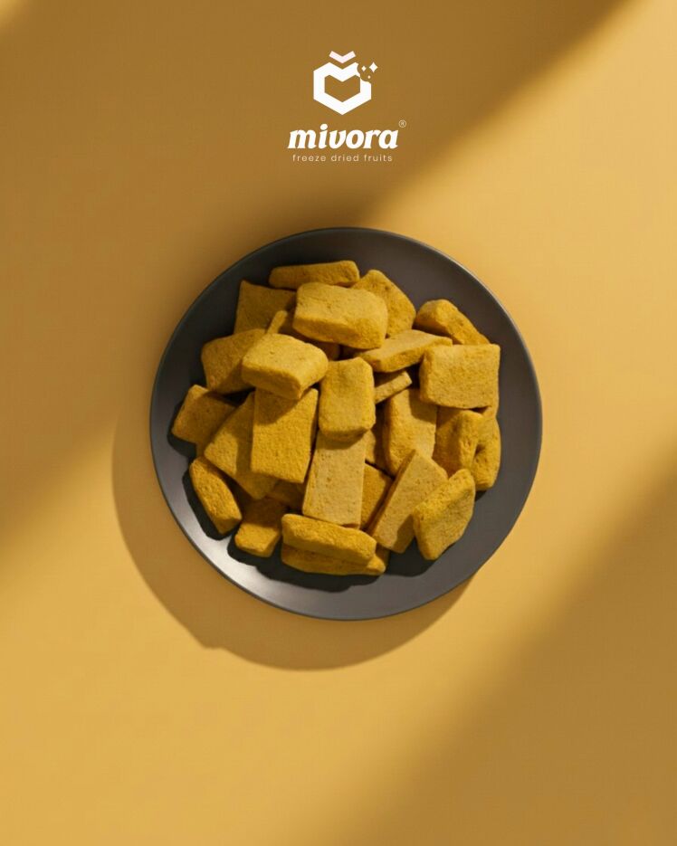 میوُرا با فناوری پیشرفته فریزدرای تمام خواص میوه را حفظ کرده و با حذف آب، آن را به میانوعدهای ترد، خوشمزه و با ماندگاری بالا تبدیل کرده است.