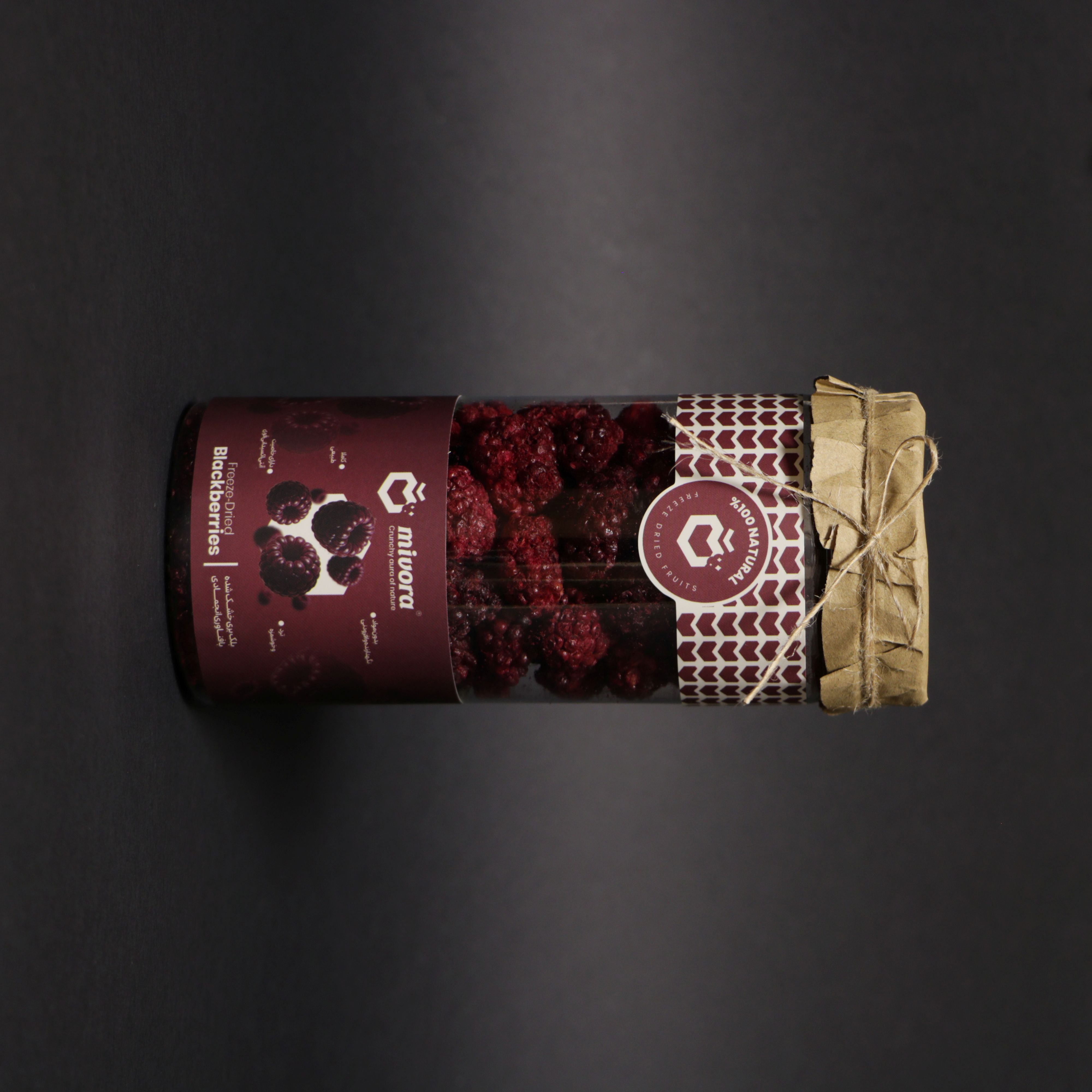 تیم میوُرا با کیفیت ترین بلک بری های برداشت شده ار باغ های ایران را گلچین کرده و با استفاده از تکنولوژی فریز درای (Freeze drying) به میان وعده ای ترد، سبک، سالم و با ماندگاری بالا تبدیل کرده است. در نهایت پس از جداسازی وکنترل کیفیت ثانویه، بلک بری های فریز درای خود را در دو سایز کوچک و بزرگ ارائه میکند.